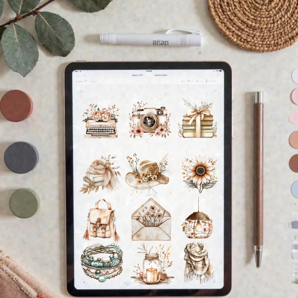 Whether you're creating summer invites, social posts, wall art, or stickers, this set is your go-to for laid-back, earthy vibes.